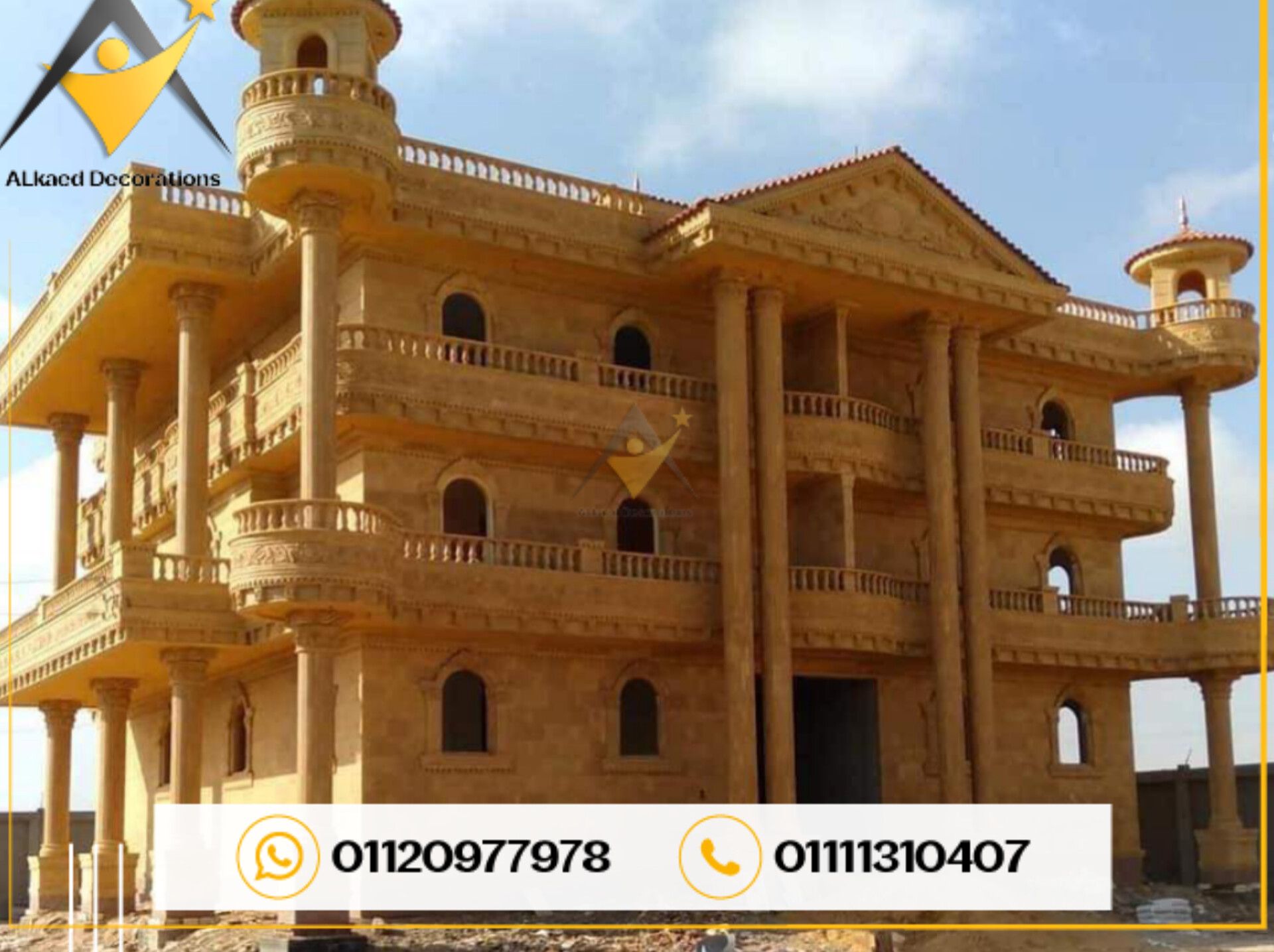 تصميم واجهات فلل وقصور ومنازل حجر هاشمي وفرعوني في مصر.